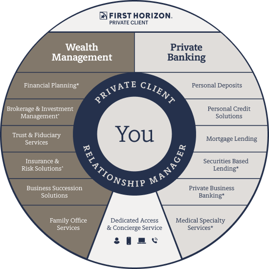 If you are a client with $1 million or more in income and investable assets and $100k in consumer deposits with First Horizon Bank┼, or $500k in investment accounts with First Horizon Advisors^, First Horizon Private Client may be the relationship for you.